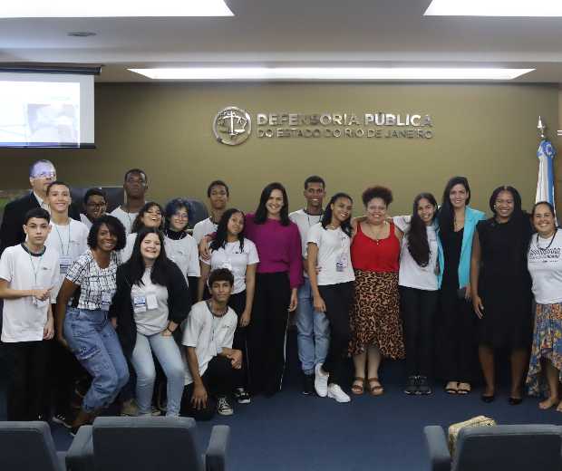 Alunos do 9º ano do Ciep Carlos Drummond de Andrade conheceram a sede da Defensoria do Rio e conversaram sobre seus direitos.